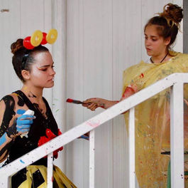 Aquest va ser un projecte que vam realitzar els escènics de l'insitut Celestí Bellera el juny de 2019 en l'acte de graduació dels alumnes de segon de batxillerat. Per fer-ho ens vam inspirar en el ballet trièdric en honor als 100 anys de l'escola de disseny alemanya "Bauhaus". Nosaltres, els alumnes, vam dissenyar i elaborar el vestuari amb materials i colors relacionats amb l'estètica del ballet trièdric: formes geomètriques i simples com ara triangles, quadrats i rectangles; colors primaris; materials pobres i reutitzats... Totes aquestes característiques, pròpies d'aquest estil tan original, intencionadament provoquen que la mobilitat dels ballarins sigui molt reduïda. Vam coreografiar l'actuació i la vam teatralitzar. El maquillatge també va ser un imprescindible per posar-nos encara més en el paper.
